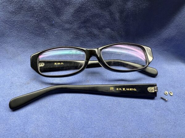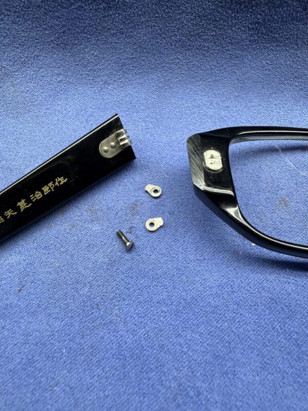 メガネ修理 匠角谷甚治郎作セルロイドフレーム埋め込み蝶番修理依頼品